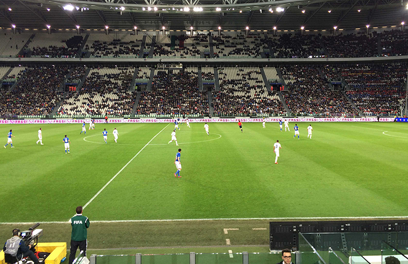 Fassi Italian footballs Turin (Italien) – 31. März 2015.  Zum ersten Mal wird die Firma Fassi Gru S.p.A. ein Spiel der Italienischen Fußballmannschaft sponsern. Das Logo Fassi wird auf den LED Walls während des Spiel England gegen Italien gezeigt, das heute Abend um 20h45 in Turin gespielt wird.
