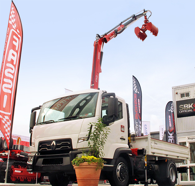 IAA2014 Fassi F40A.0.22 Ein F40A.0.22 auf einem Renault Truck D7.5 L2 t wurde auch an der Messe IAA 2014 ausgestellt. Hebekapazität bis 3,87 tm, maximale hydraulische Ausladung bis 6,45 m.