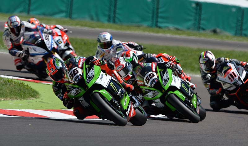 FASSI sponsor 2015 WSBK - Donington Race 1 Tom Sykes gewann das erst 23 Runden lange WorldSBK Rennen in Donington Park unter trockenen, aber kalten Wetterbedingungen nach einem harten Kampf gegen seinen KRT Teamkollegen Jonathan Rea. Das Duo wechselte sich fast das komplette Rennen lang an der Spitze ab, nachdem sie den frühen Führenden Leon Haslam (Aprilia Racing Team – Red Devils) hinter sich gelassen hatten.