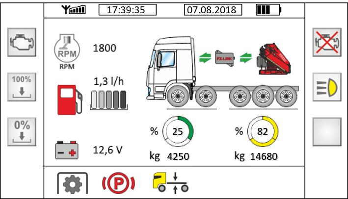 The system interprets and integrates the messages coming from the truck through the CAN-BUS connection, encodes, processes and transforms them, making them available to the crane operator on the remote control.