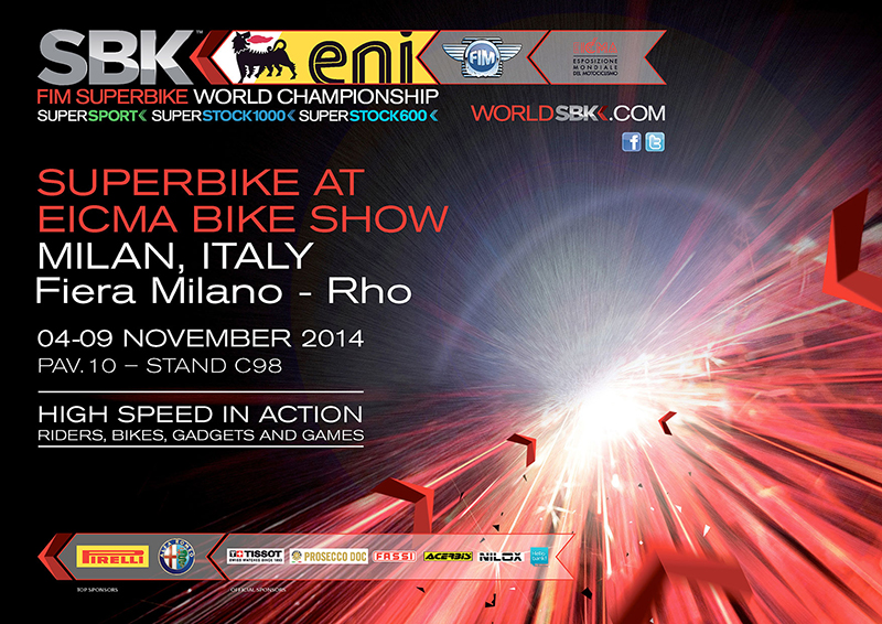 The FIM Superbike World Championship will be present at the 72th International Motorcycle Exhibition which will take place in Milan (Italy), Rho Fair from 04th till 09th November 2014. Dorna Group will have a great pleasure to welcome you at the SBK Paddock Show, located at PAVILION 10 – STAND C98, to share with you a series of entertainment activities.
