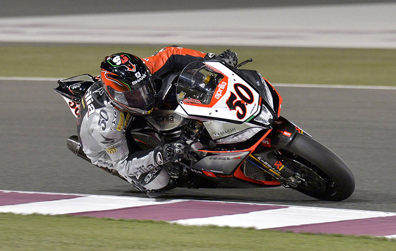 Doha (Qatar), Sunday 2 November 2014 – Sylvain Guintoli (Aprilia Racing Team) is the 2014 eni FIM Superbike World Champion after a nail biting season final race held under floodlights at the Losail International Circuit. The Frenchman took the lead on lap 5 and, courtesy of a strong race pace and a new lap record of 1’57.906, he pulled a solid gap on the chasing duo of Jonathan Rea (Pata Honda World Superbike) and Tom Sykes (Kawasaki Racing Team) to take his first career double and the crown.
