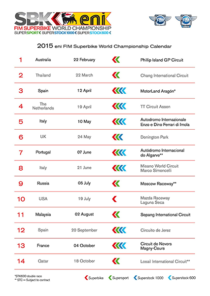 2015 Calendars for the eni FIM Superbike World Championship