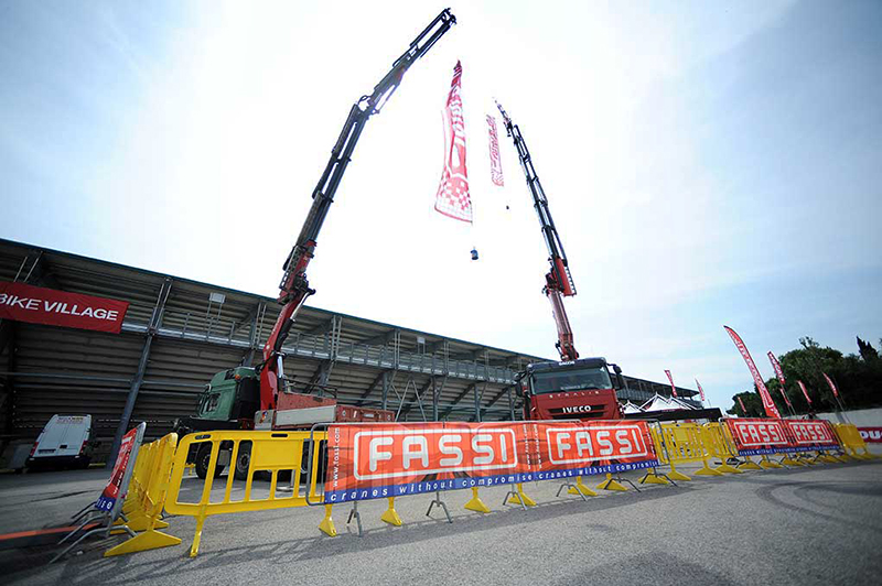 Two Fassi loader cranes belonging to the heavy duty range in the SBK village at Misano