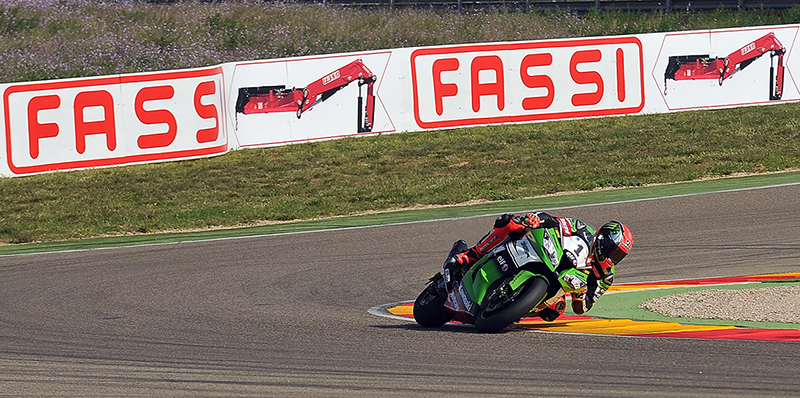 Alcaniz (Spain), Sunday 13 April 2014 - The second race of the day at MotorLand Aragon was a carbon copy of race 1, with Kawasaki Racing Team riders Tom Sykes and Loris Baz dominating in the Spanish sun.