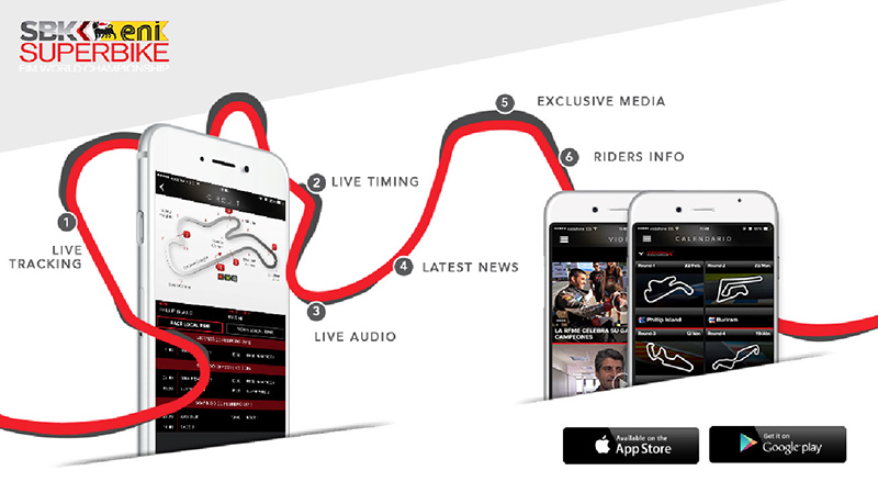 WorldSBK offers fans the one and only official application to enhance enjoyment of the 2015 World Superbike Championship, with a new interface, improved functionality and a wide variety of contents. The new 2015 WorldSBK Official App is the only app with Live Audio Commentary, Live Tracking and Live Timing for each qualifying session and race of the eni FIM Superbike World Championship. The app provides these features in real time via your mobile or tablet device.