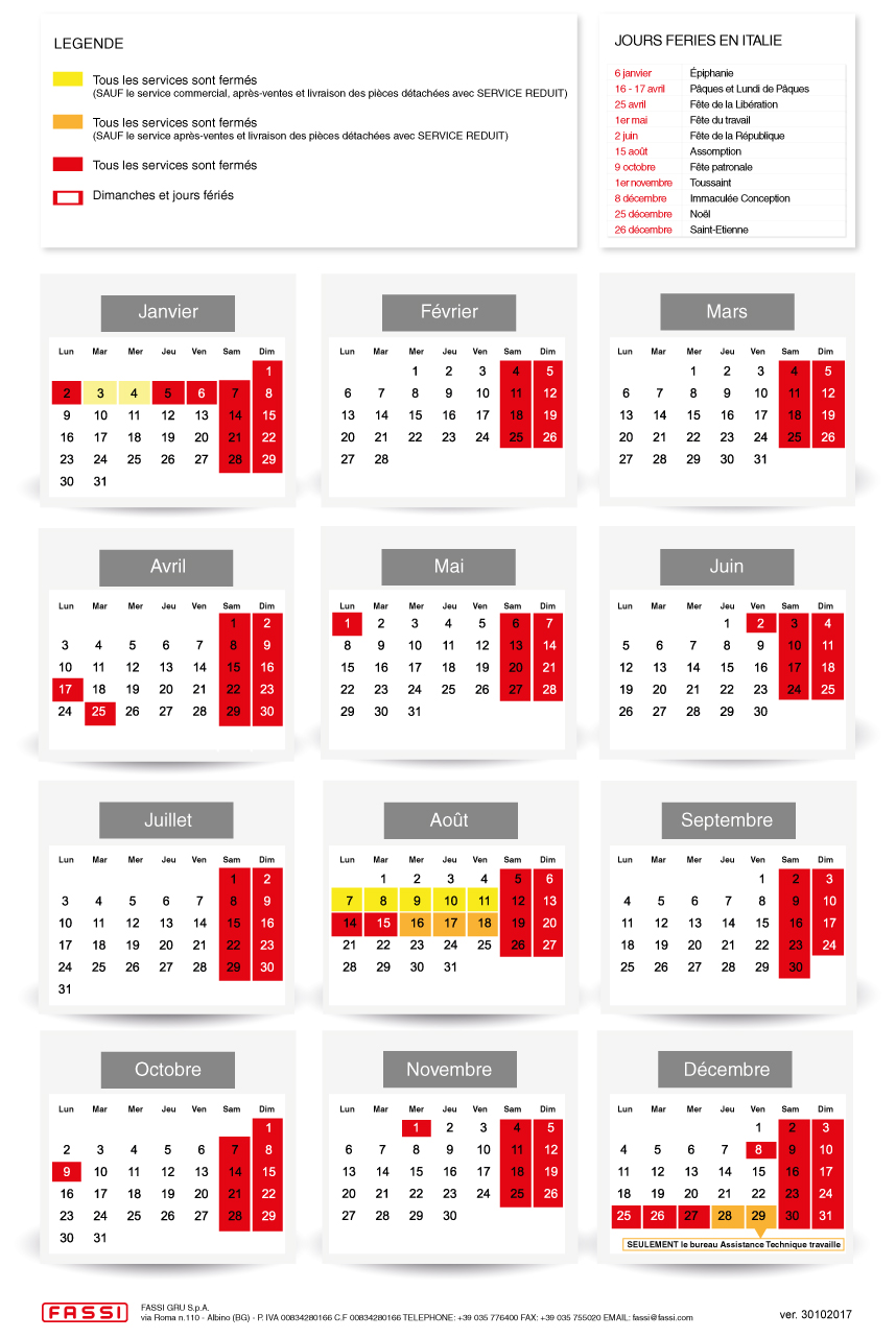 Fassi Gru S.p.A. sera fermé les jours ci-après :