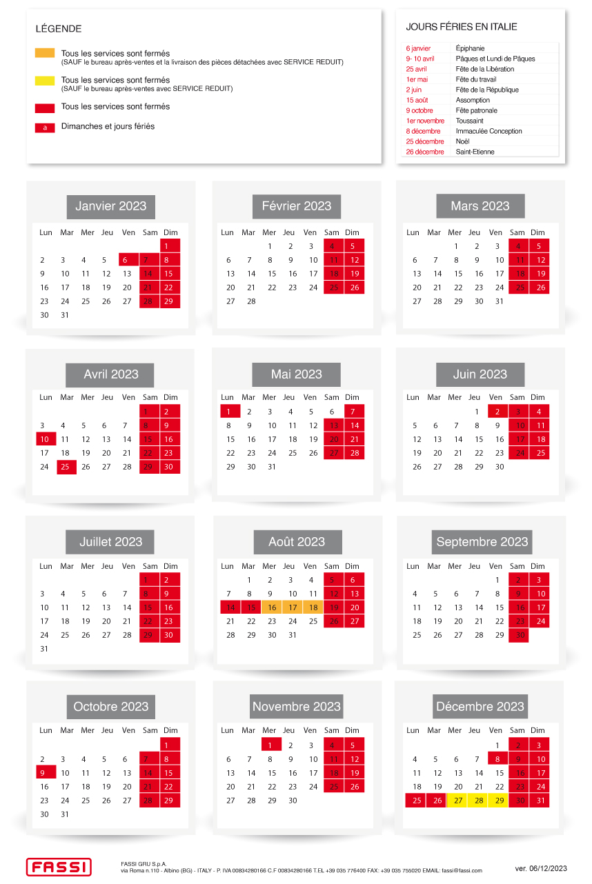 Fassi Gru S.p.A. sera fermé les jours ci-après :