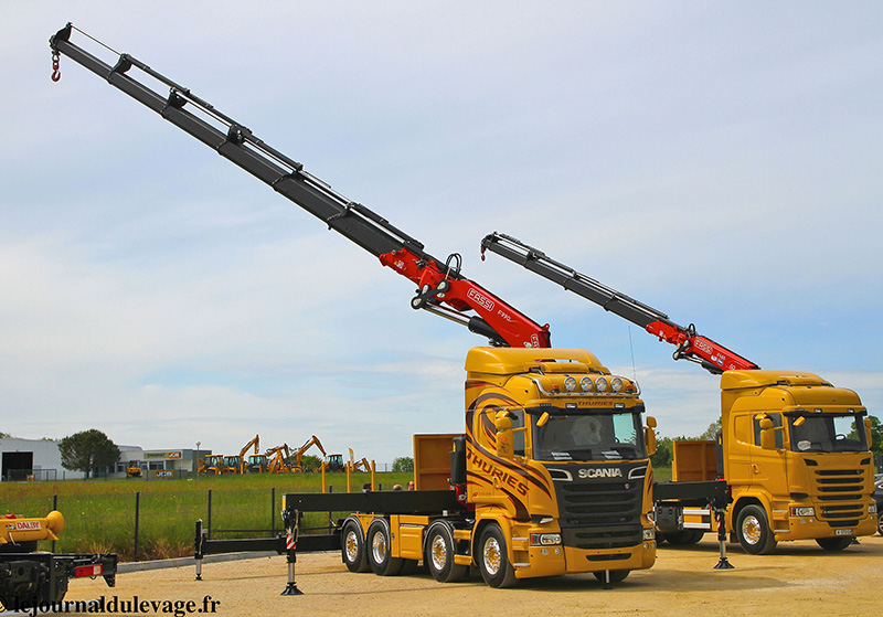 Fassi 90 tm Transport Thuries 30 avril 2015 - Les Transports Thuriès (31) viennent de réceptionner une nouvelle grue Fassi F990RA, de 90 t/m de capacité, ainsi qu’une nouvelle F485RA (50 t/m) également de marque Fassi. Les véhicules ont été carrossés par la Carrosserie TCI à côté de Toulouse. La société Transports Thuriès est situé at Aucamville dans la périphérie nord de Toulouse. Courtoisie de lejournaldulevage.fr
