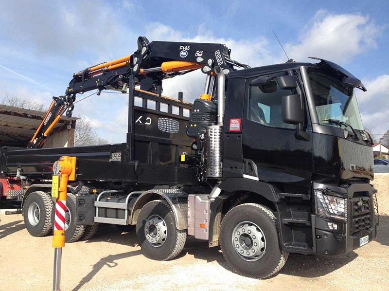 Fassi-grue-F485A.2.27-xe-dynamic-a-Troyes-thumbTroyes, région Champagne Ardennes (France) - Mars 2015. Miltra et son concessionnaire CHAUMON PL basé à Troyes (à 150 Km sud est de Paris) a récemment livré à la Société GALLISSOT, spécialisée dans la rénovation  de charpentes et de couvertures, une grue FASSI F485A.2.27 xe-dynamic avec un Jib L154.