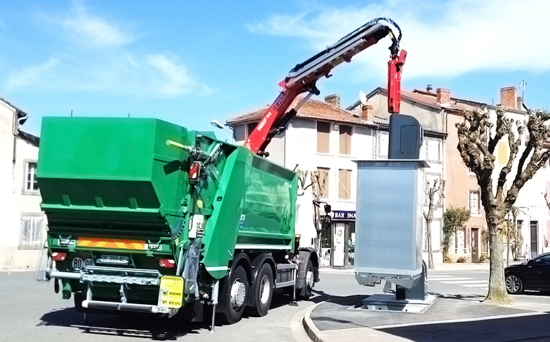 Fassi équipements spécifiques pour le recyclage FOREZ Bennes, concessionnaire Miltra sur la région de St Etienne, depuis plus d’un an commercialise en France des machines équipées avec grues Fassi dédiées au recyclage. FOREZ Bennes, en partenariat avec Fassi Gru et Farid, offre des équipements spécifiques pour le recyclage équipés avec grues dotées de systèmes électroniques spécifiques pour la manutention des conteneurs enterrés, semi enterrés rigides, souples, conteneurs 2 et 4 roues.