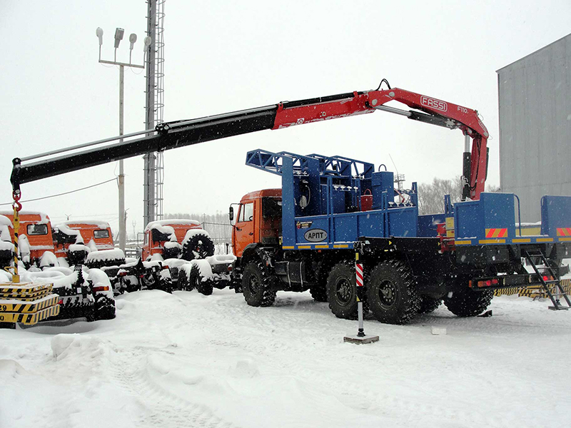 Fassi gru F110A su Kamaz 6X6Dal 1999 Aznakaevski Neftemash è un allestitore di gru in Russia molto popolare come officina specializzata nella realizzazione di una vasta gamma di mezzi speciali per il mercato dei veicoli logistici utilizzati nel settore petrolio e gas.