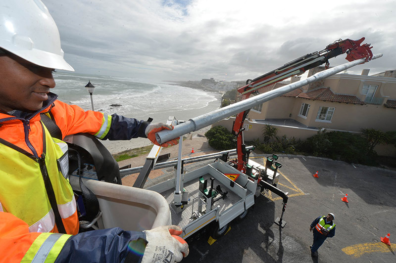 Fassi South Africa Città del Capo (Sud Africa) - Agosto 2015. I servizi elettrici della città hanno un nuovo veicolo, un nuovo camion sofisticato nella loro flotta. Infatti un camion Quon UD è stato configurato appositamente per gestire la palificazione elettrica e la sua costruzione. Un modello di gru Fassi F135A.2.23 equipaggiata con un manipolatore di pali Kinshofer in combinazione con una piccola piattaforma, per lavorare in altezza, tutto installato su un veicolo unico. Per gentile concessione di 600SA Holding Ltd (A. Conradie).