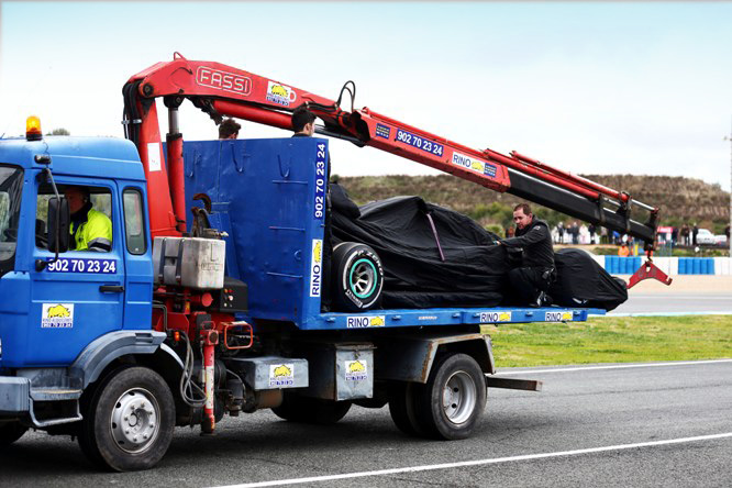 Fassi Jerez F1 test Jerez de la Frontera (Spain) - February 2015. The days of testing scheduled earlier this month at Jerez de la Frontera are ended, during whose the new F1 car of all teams are been committed. On the circuit was also operative a light duty truck for the recovery of the fault cars on the track, with a Fassi truck mounted crane.