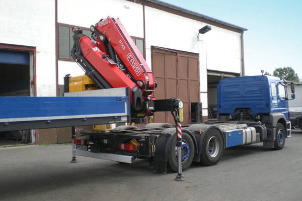 Fassi F356A Oranienburg (Germany) - The local Fassi dealer, the company Strehlow Fahrzeugbau GmbH (located about 30 km at north of Berlin), between the different types of possible installation of the cranes on the trucks, makes also those demountables. The possibility of interchanging the configuration of the vehicle, makes it even more versatile, depending on the type of use required.
