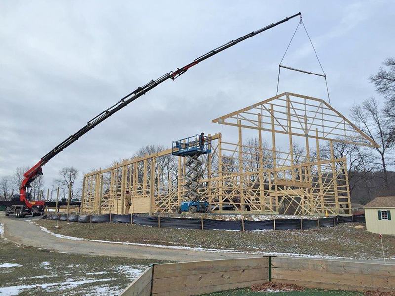 Fassi Fascan F1950RAL Pennsylvania (U.S.) - December 2014. The F1950RAL crane of Fassi with the L816L jib can give his valuable contribution when it's necessary to move bulky wooden structures. Into the photo the cranes is working at the maximum extension: more than 41 meters!