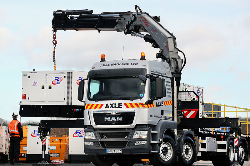 Axle Haulage - FassiDunstable-based Axle Haulage has invested in a sleeper-cabbed MAN TGS  8×2 which sports a 66 tonne-metre rated Fassi crane and a platform body. The new vehicle assist it in its nationwide transport work for a range of civil engineering, rail and construction customers. The firm, which last year celebrated its 25th anniversary, runs 18 platform trucks out of six sites and has just achieved silver Fors accreditation.
