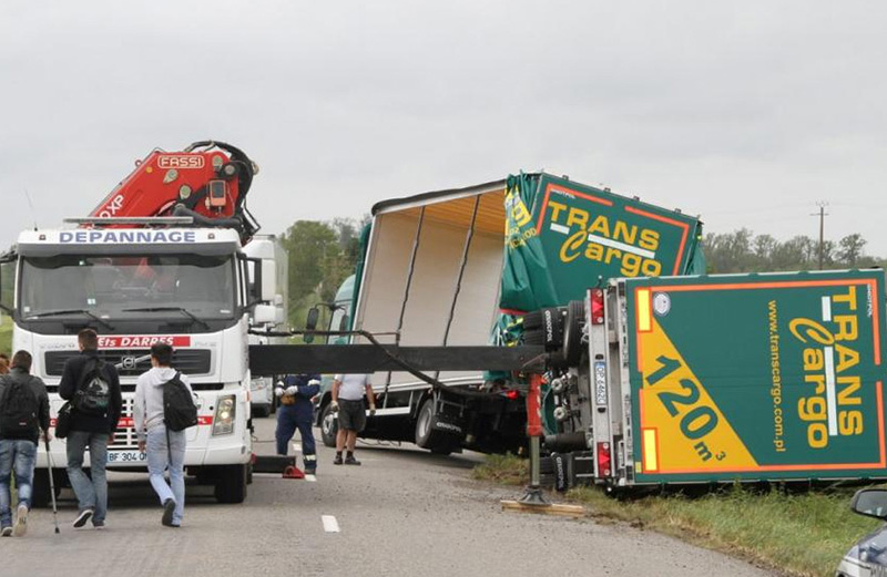 Fassi-crane-for-road-recovery-thumbVillefranche-de-Rouergue (France) - Thursday, 22 May 2014. Close to Villefranche-de-Rouergue town located in the department of Aveyron in the Midi-Pyrenees  region a strong blast of wind caused a shocking accident. "Following a blast of wind very strong, I saw a trailer to overturn. At one point I really thought that the entire vehicle was being overthrown" This is the testimony of a farmer Sanvensa town near Villefranche-de-Rouergue.