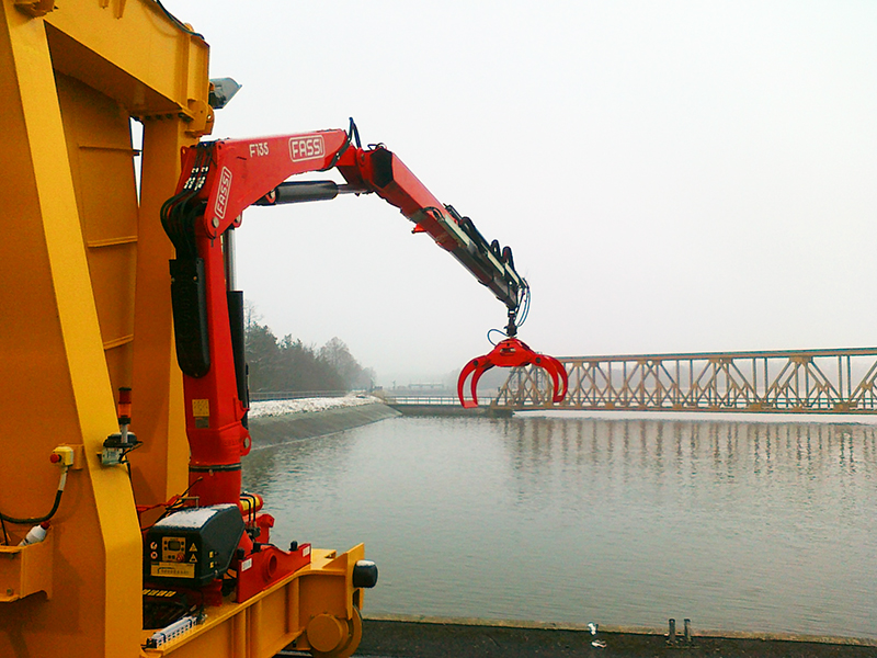 Fassi truck crane F135AAt Dam in Dychow in Poland (not far from the German border) was completed the installation of a Fassi Truck Crane System F135A.0.23 active by the Rialex in favor of the Polish energy group PGE. The crane is destined for extraction of bulky waste in the water basin for the production of electricity.
