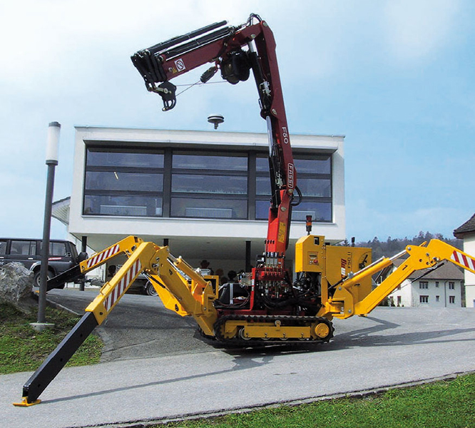 Fassi-crane-on-crawler-BARMAG-F50II-thumbThe BARMAG F50 II is a tracked vehicle equipped with a Fassi crane, which is used for the handling of loads. This special vehicle is suitable for situations where the work space and the ground access is not suitable to normal transportation vehicles.