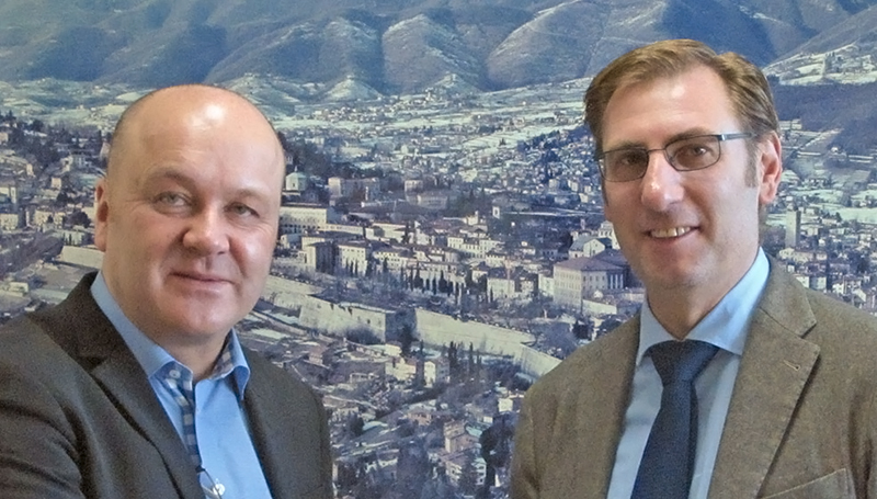 In the picture Fredrik Jonsson CEO of Cranab to the left and Giovanni Fassi, CEO of Fassi Gru S.p.A., to the right, during the meeting Wednesday 22th at the headquarter of the italian company.