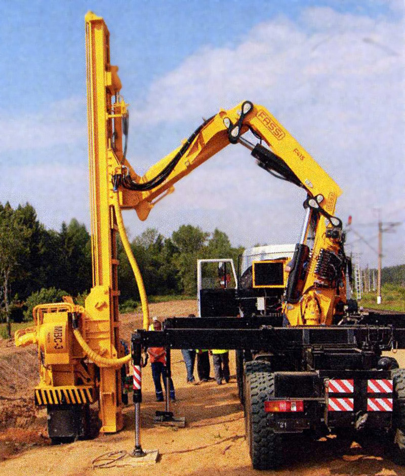 Fassi-hydraulic-crane-F415RA-Vibroburmash-thumbA crane Fassi F415RA.2.0 works together with a machine that makes the site of the poles of the electrical railways. This particular drill "vibration machine" (made by the Russian Vibroburmash) is active in the Moscow area and is used by a important company of maintenance that operates for the Russian railways.