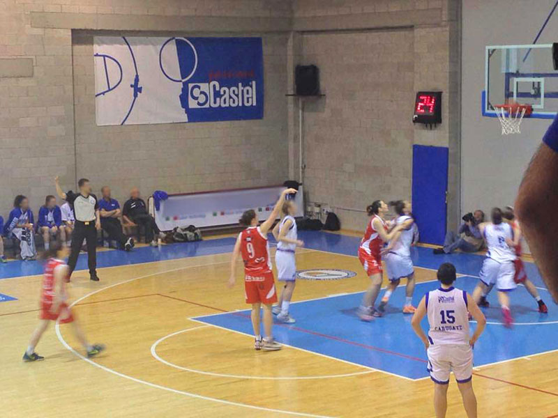 Carugate (Milan - Italy) - April 12, 2015. Sunday, the female athletes of the basketball team of Albino have won the eighth match of Group G of the relegation poule of the national A2 female championship of basketball. The Fassi Edelweiss Albino team won the difficult external match with the score of 44-63 against the Castel Carugate team.